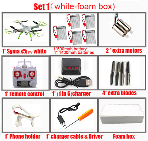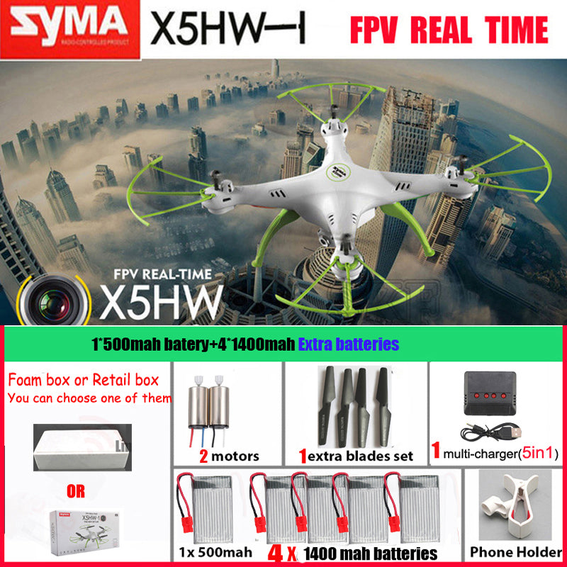 SYMA X5HW FPV RC Quadcopter Drone with WIFI Camera 2.4G 6-Axis RC Helicopter VS Syma X5SW Upgrade with 5 battery + 5in1 Cable